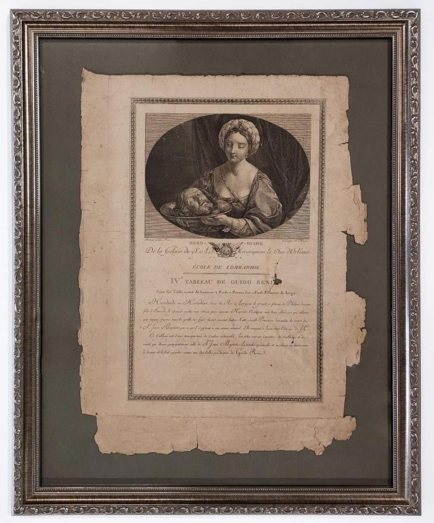 For this project, Jace worked with an 18th or 19th century engraving of Salome with the Head of John the Baptist. This hauntingly elegant piece required a framing approach that honored its era, maintained its fragile condition, and created a timeless presentation.