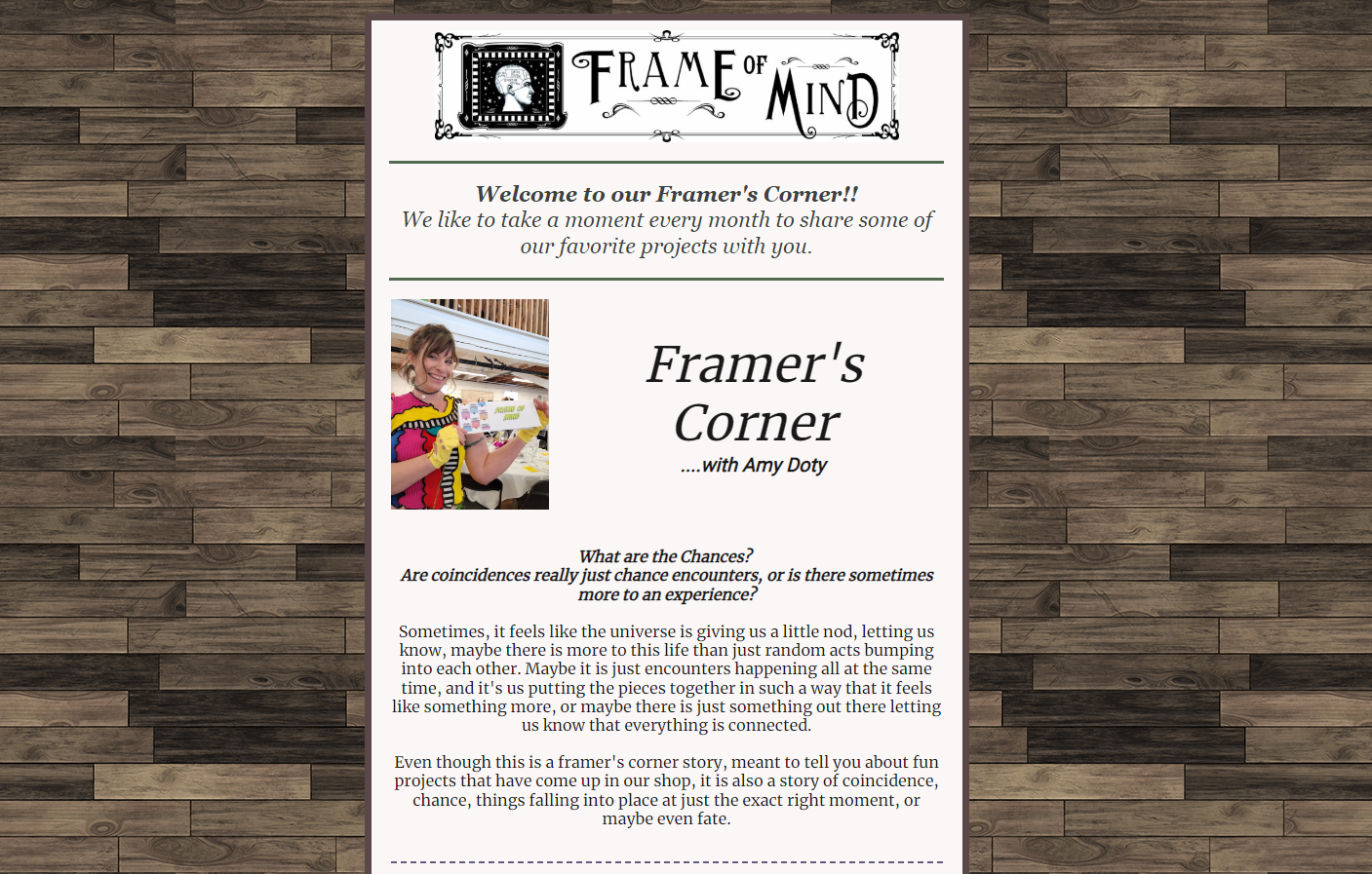 This month’s featured Framer’s Corner is from our owner, Amy. She shares a chance encounter with her story this month.