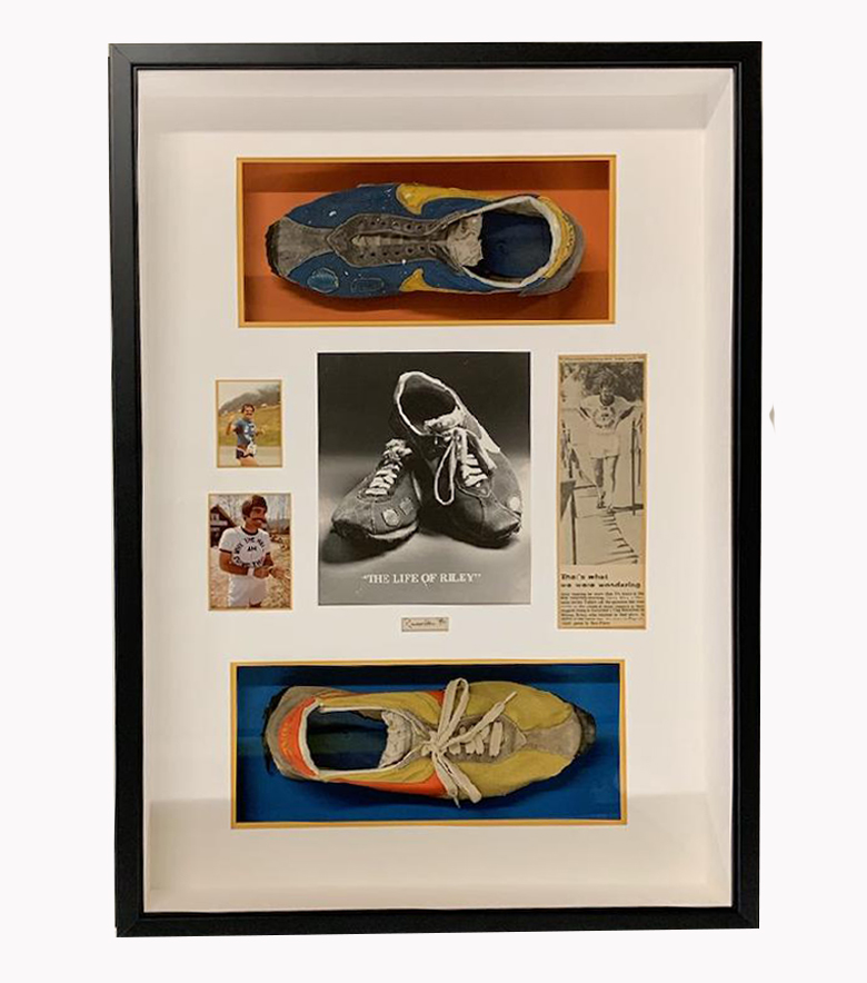 In this case we have a very one of a kind framing job, our designer Zoe took on the challenge of framing Nike running shoes.