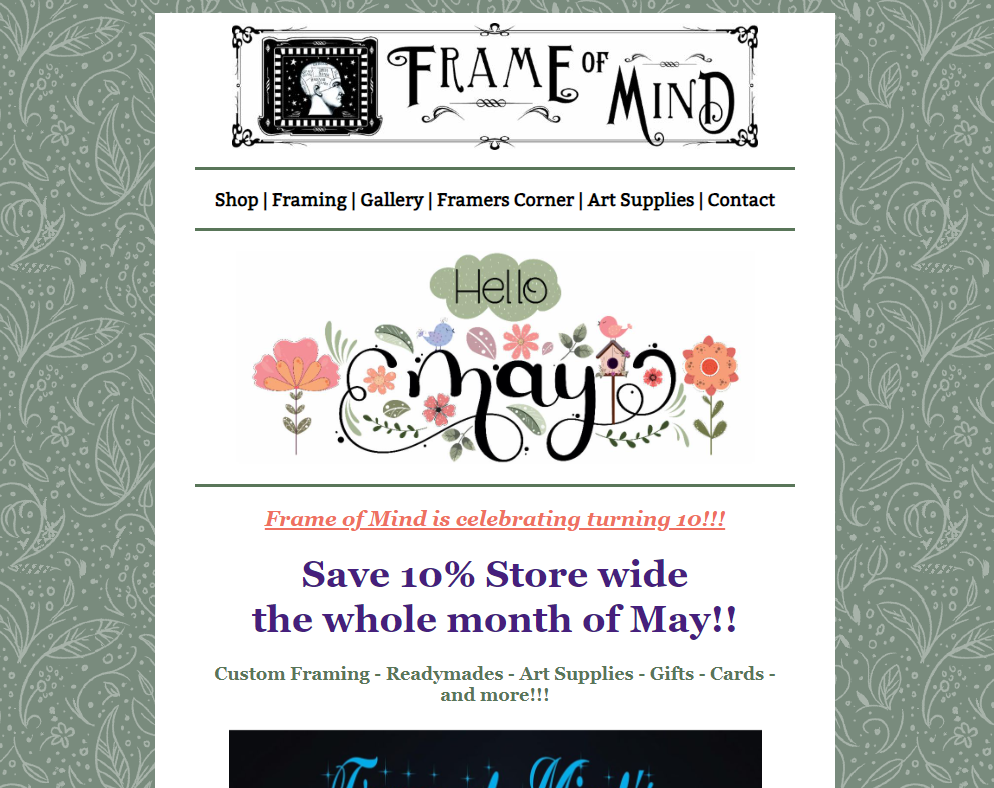 Read our latest newsletter below and keep your eyes out for more news from Frame of Mind as the year rolls on!