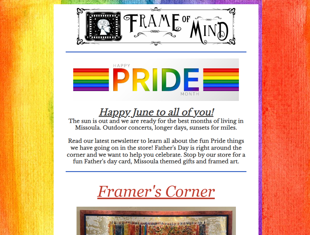 Read our latest newsletter to learn all about the fun Pride things we have going on in the store! Father’s Day is right around the corner and we want to help you celebrate. Stop by our store for a fun Father’s day card, Missoula themed gifts and framed art.